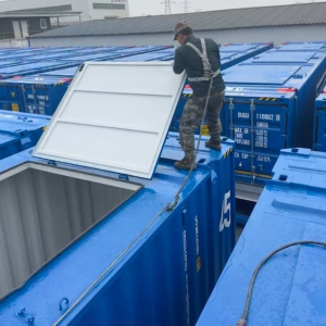 Furlog ha optato per l’utilizzo di un particolare acciaio leggero, resistente e antiruggine – il Corten A – che contribuisce a mantenere la normale portata di una cassa di questo tipo a 29 tons nette di merce. Nonostante l’infrastruttura dei container a firma Furlog sia stata rinforzata con barre aggiuntive – componenti di maggior peso – a compensazione delle 3 aperture sul tetto, il peso a vuoto è rimasto 5.000 kg. Nello specifico, Furlog è riuscita a mantenere una tara bassa grazie all’utilizzo di questo acciaio leggerissimo ma estremamente solido e robusto, scelto per realizzare l’intera unità, e come conseguenza ad ottenere un cubaggio di ben 89m³: ciò rende questo specifico container una soluzione tecnica avanzata e ottimizzata in termini di carico e sicurezza. Queste caratteristiche consentono un significativo aumento della capacità di carico senza compromettere la durata e la resistenza del container con un carico utile massimo pari a 29 tons per un peso lordo totale di 34 tons.