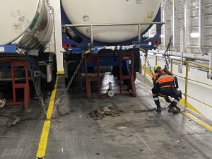 La dimostrazione operativa a bordo della nave Eco Valencia ha fornito un riscontro concreto: durante le operazioni di rizzaggio e derizzaggio, uno degli ambiti più impegnativi dal punto di vista fisico, i lavoratori hanno registrato un sensibile calo dell’affaticamento, soprattutto a livello di schiena e arti inferiori. Al termine della Conferenza Stampa, i giornalisti si sono poi spostati in porto, presso l’accosto 15 C della sponda est della Darsena Toscana, per assistere ad una applicazione dimostrativa di un esoscheletro lombare, usato da un lavoratore della Compagnia per le manovre di rizzaggio e derizzaggio di un rimorchio. “Gli effetti benefici ci sono, soprattutto per la schiena e per le gambe” è la testimonianza offerta da Jonathan, che ha utilizzato l’apparecchiatura tecnologica per assicurare un semirimorchio. “A fine turno mi sento meno affaticato anche perché l’armatura mira a correggere la postura della schiena, spesso agendo da richiamo passivo per mantenere la colonna dritta” ha dichiarato, sottolineando che si tratta di “un ottimo risultato, soprattutto se si pensa che, nel caso di un imbarco, si effettuano sino a 250 attività di rizzaggio a bordo nave“.