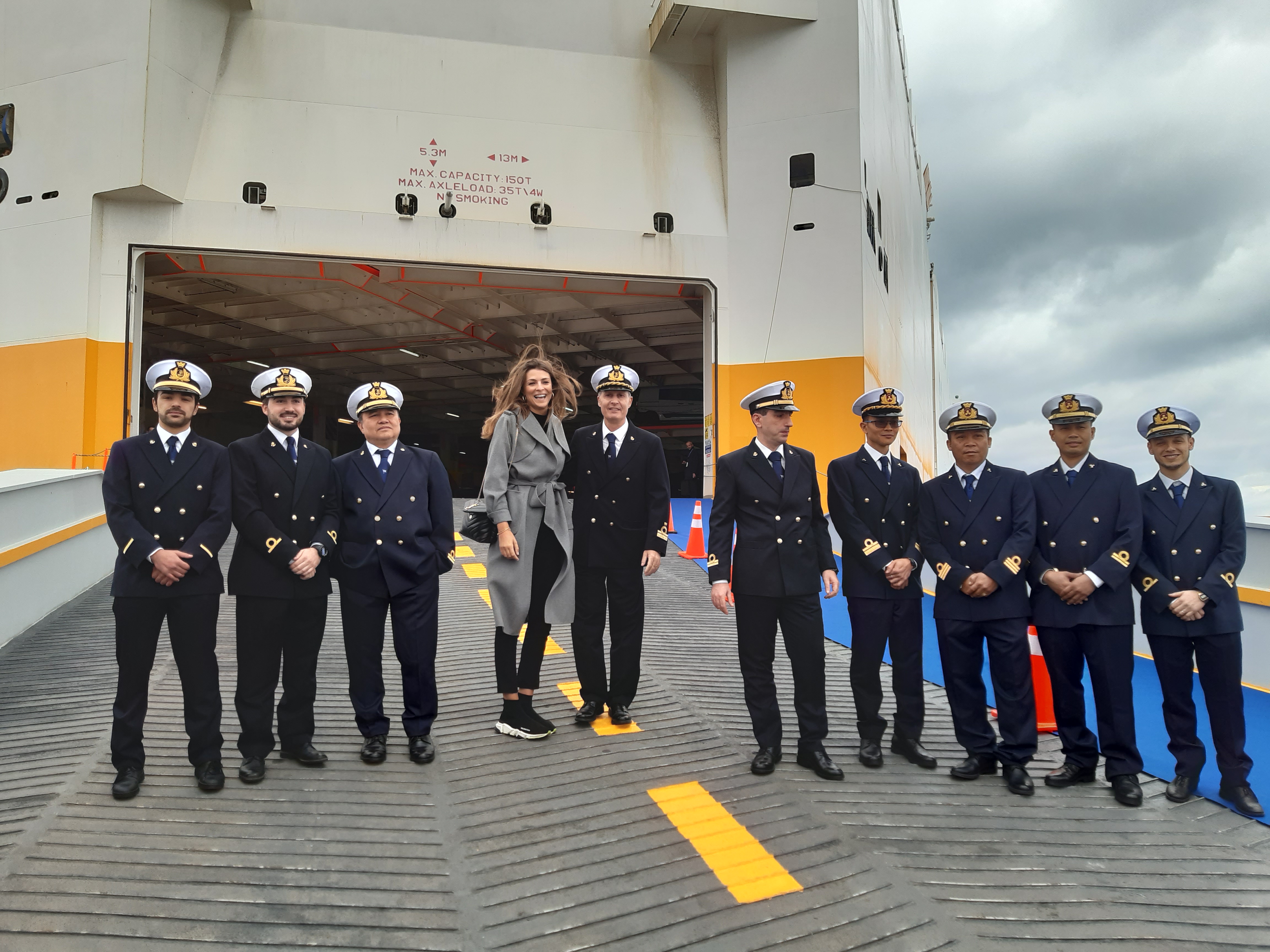 Madrina dell'evento, presentato da Massimo Giletti, è stata Cristina Chiabotto, che insieme alle autorità locali, il vertice della supply chain di Fiat Chrysler Automobiles (Fca) e il top management del Gruppo Grimaldi ha tagliato il nastro della nave dopo la benedizione, a cui ha fatto seguito la tradizionale rottura della bottiglia.