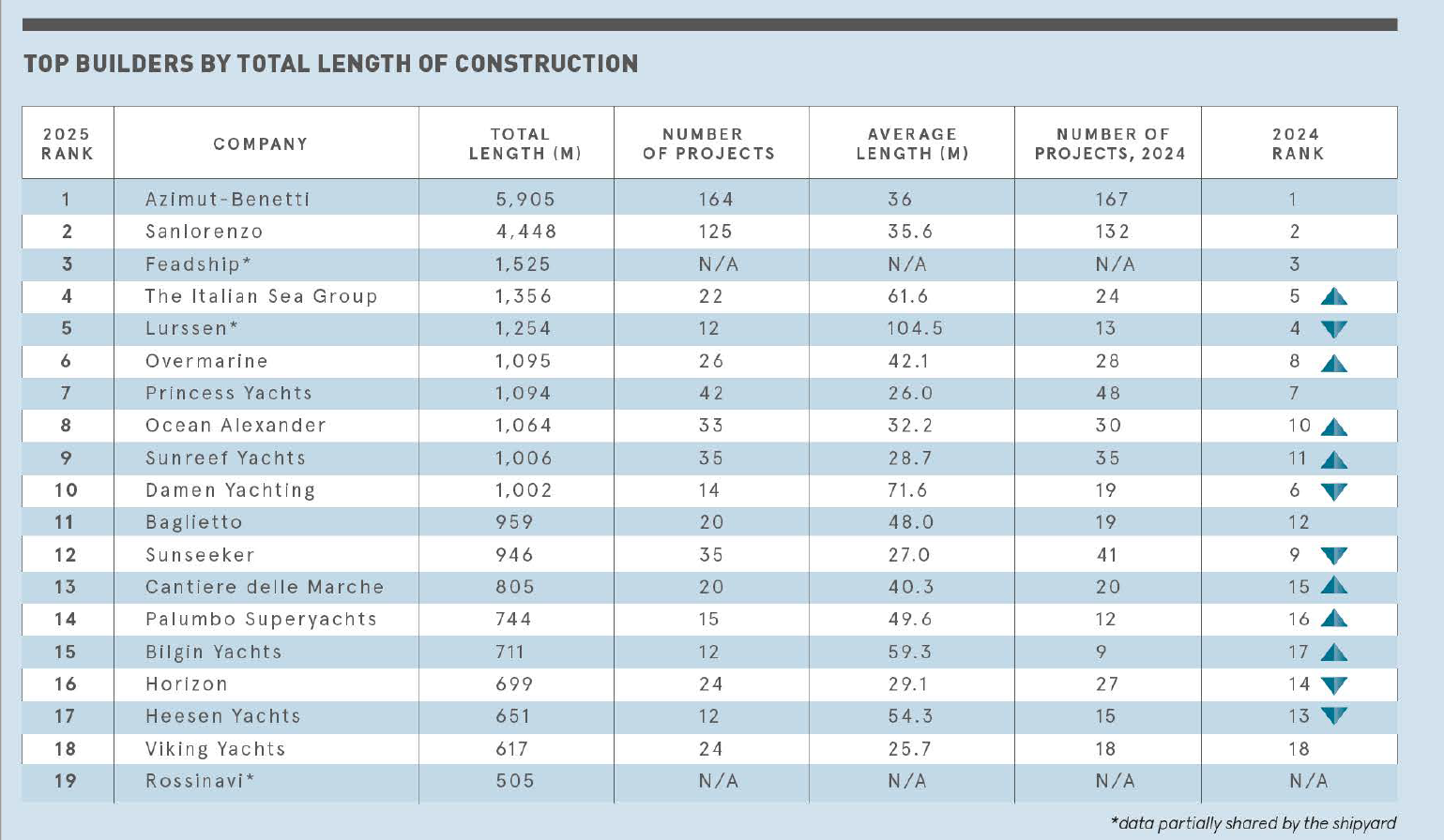 La prima posizione è quella del Global Order Book 2025, la classifica annuale redatta dalla testata di riferimento, Boat International, sulla base dei dati di 185 cantieri in 5 continenti.